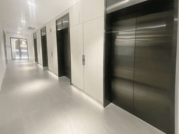 Floor-to-ceiling height is 2.7 m. The façade uses a unitized curtain wall system with double Low-E glass, reducing solar heat gain, improving acoustic insulation, and lowering air conditioning energy consumption; the exterior surface is also coated with a special air-purifying paint. Floors 16 – 19 are designed with soft spot provisions – pre-prepared wall sections that allow knock-through openings for internal staircases connecting two adjacent floors, well-suited for tenants occupying multiple levels who require inter-floor connectivity.