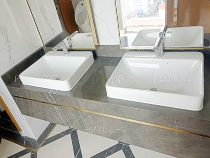 Bên trong tòa nhà cũng được thiết kế tỉ mỉ với độ hoàn thiện cao. Khu vực sảnh chờ, bàn lễ tân rộng rãi, được lát đá hoa văn tinh tế với tông màu trắng vàng làm chủ đạo, toát lên nét sang trọng, đẳng cấp.